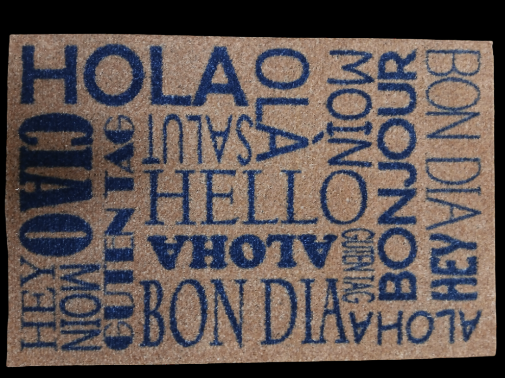 Kókuszszálas lábtörlő felirattal.