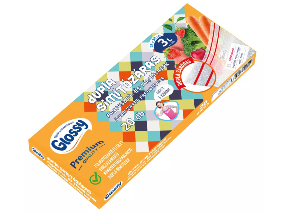Glossy Dupla Simítózáras Fagyasztó és Tároló Tasak 3 L, 20db