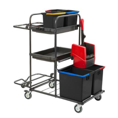 Felszereltség: 3db 6L-es vödör, 2 db 17L-es vödör, prés, 2db tálca, 1db nyéltartó, 1x120L/ 2x70L zsáktartókeret. Méret: 110x59x107cm.