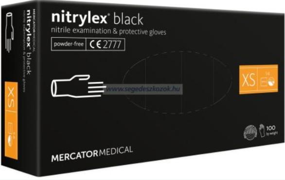Nitrylex kesztyű, púdermentes, fekete "XS", 100db/doboz