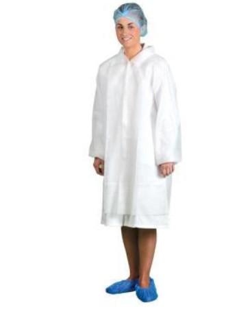 Polipropilén nem szőtt anyaggal és elülső patentos nyílással rendelkező egyszerhasználatos látogatóköpeny.