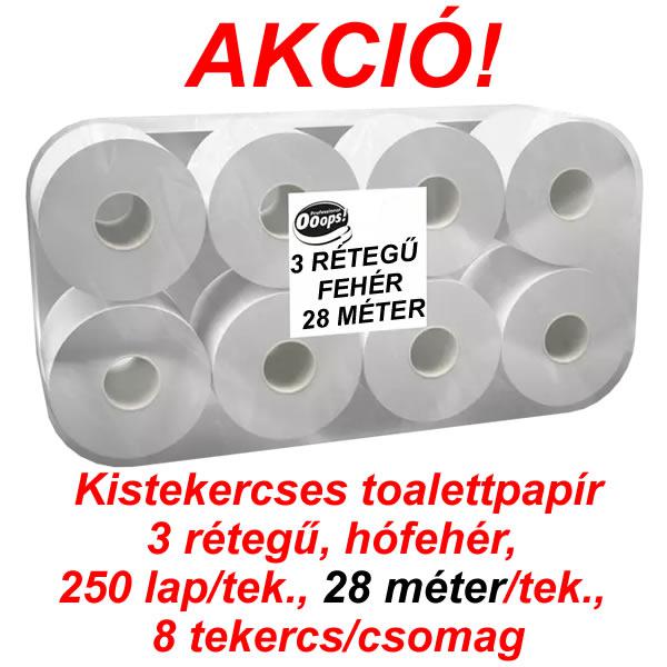 Toalettpapír kistekercses, 3rtg., fehér, 28m/tek.,250lap/tek., 8tek./cs, (9cs/#)